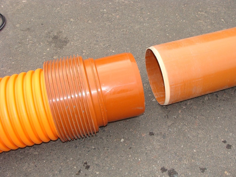 • Двухслойная структура — гладкая внутренняя стенка белого цвета и гофрированная внешняя стенка оранжевого цвета.