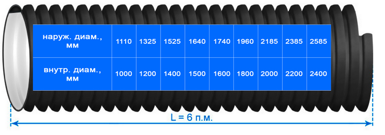 - большой выбор диаметров (d-1000–2400 мм);